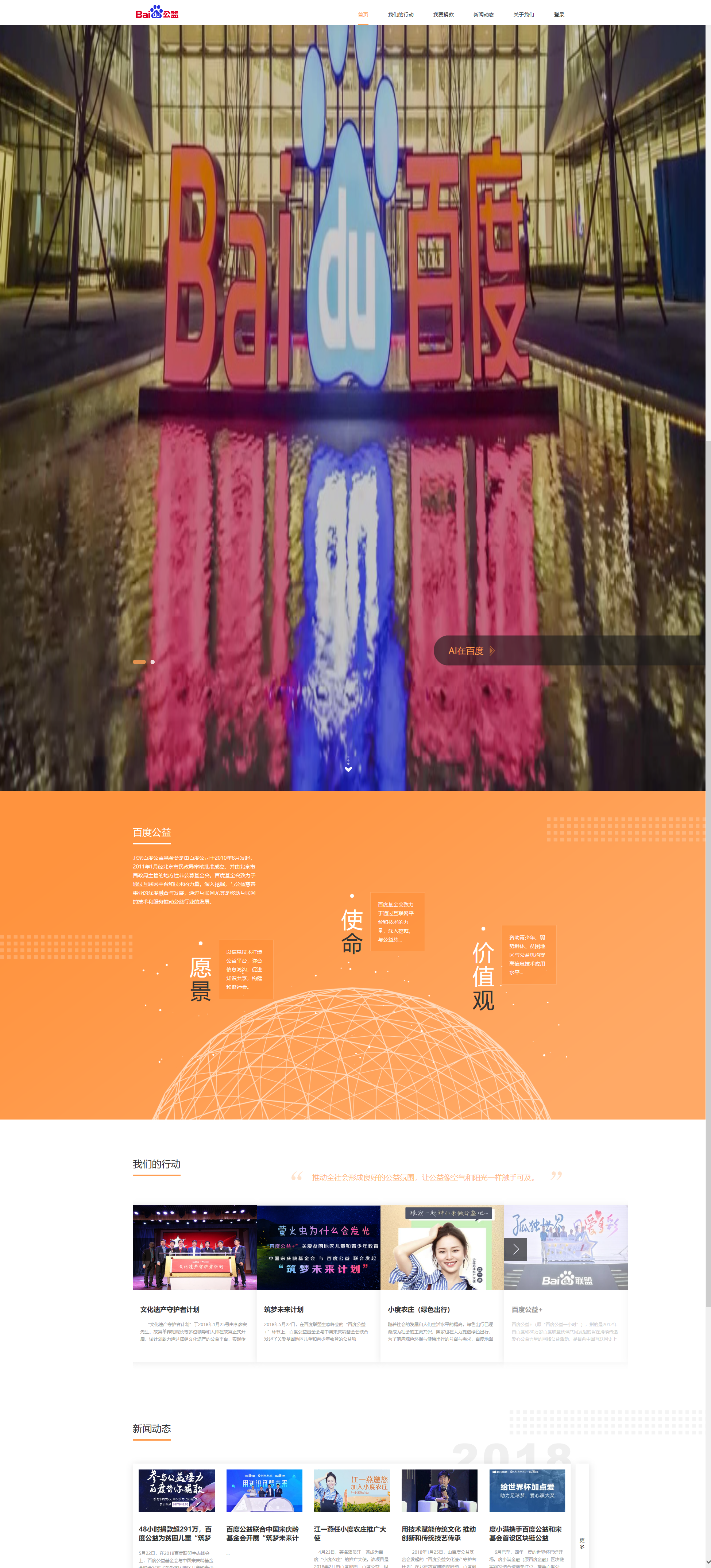 設(shè)計(jì)思路:分形科技承擔(dān)其IT整體解決方案建設(shè),包括官網(wǎng)建設(shè),社區(qū),運(yùn)營的等?,F(xiàn)有項(xiàng)目有百度公益,救助平臺,認(rèn)證官網(wǎng),CSR官網(wǎng),百度尋人,中國志愿者服務(wù)官網(wǎng)等。是分形科技的長期合作伙伴