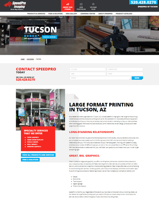 比如,點(diǎn)擊Tucson(圖森)之后,你會(huì)進(jìn)入一個(gè)介紹這個(gè)地點(diǎn)的特色服務(wù)的頁面--貼花、帳篷、桌墊、展覽陳列等等,當(dāng)然還包括該店鋪的團(tuán)隊(duì)信息。