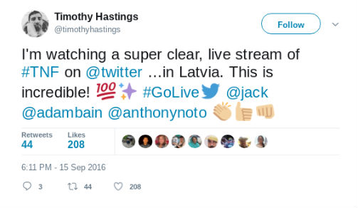 今年亞馬遜在NFL賽事直播中擊敗了Twitter,達成5000萬美元協(xié)議,將直播今年舉行的10場周四夜賽,而Facebook Live也已經(jīng)與??怂贵w育公司就冠軍聯(lián)賽直播事宜達成協(xié)議。