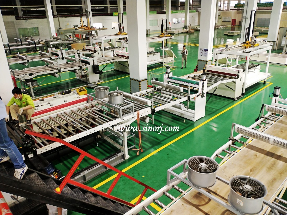 以上四層均可同時在一條生產(chǎn)線上完成多層結(jié)合為一體??蓽p少表層處理花紋、耐磨層的設備,減少人工及設備的投資,大大降低PVC地板生產(chǎn)成本。